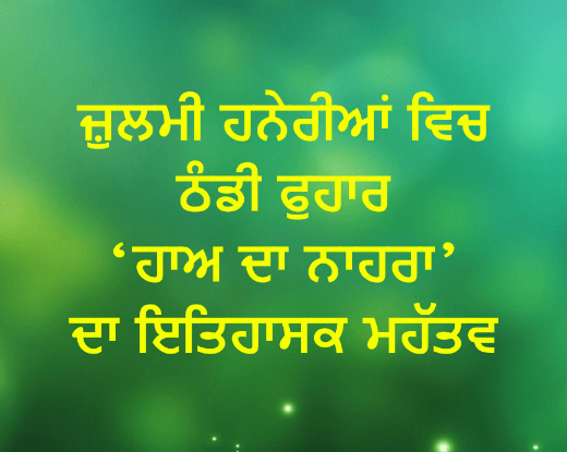 ਜ਼ੁਲਮੀ ਹਨੇਰੀਆਂ ਵਿਚ ਠੰਡੀ ਫੁਹਾਰ ‘ਹਾਅ ਦਾ ਨਾਹਰਾ’ ਦਾ ਇਤਿਹਾਸਕ ਮਹੱਤਵ
